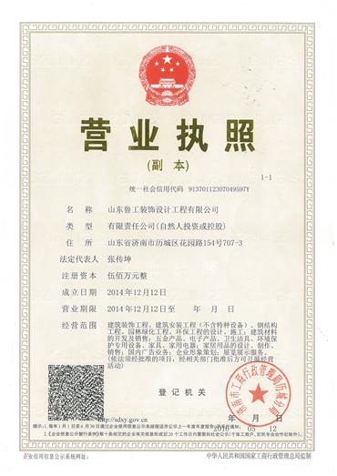公司擁有資質(zhì):建筑裝修裝飾工程承包貳級,建筑裝修裝飾設(shè)計乙級。
